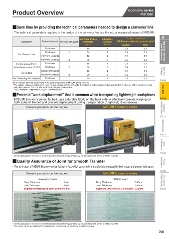 · The difference between MISUMI Economy series and MISUMI standard product is noise performance. · MISUMI Economy series flat belt uses a durable fabric on the back side to effectively prevent warping on P.705